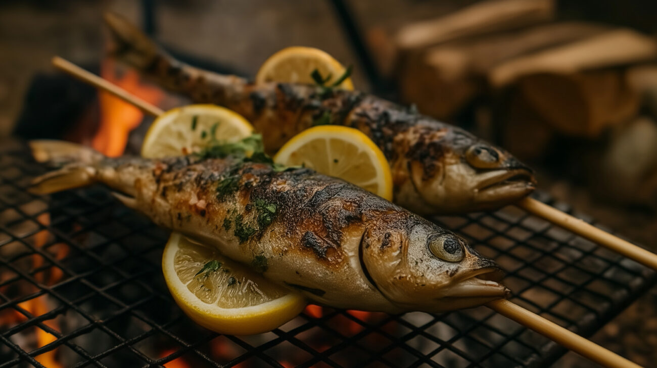 Charcoal-Grilled Lemon Pepper Fish Skewers