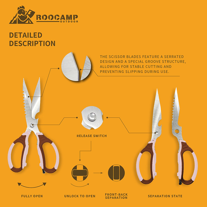 This is the ROOCUT NO.1 Multi-Functional Outdoor Cooking Shears—designed to bring convenience and joy